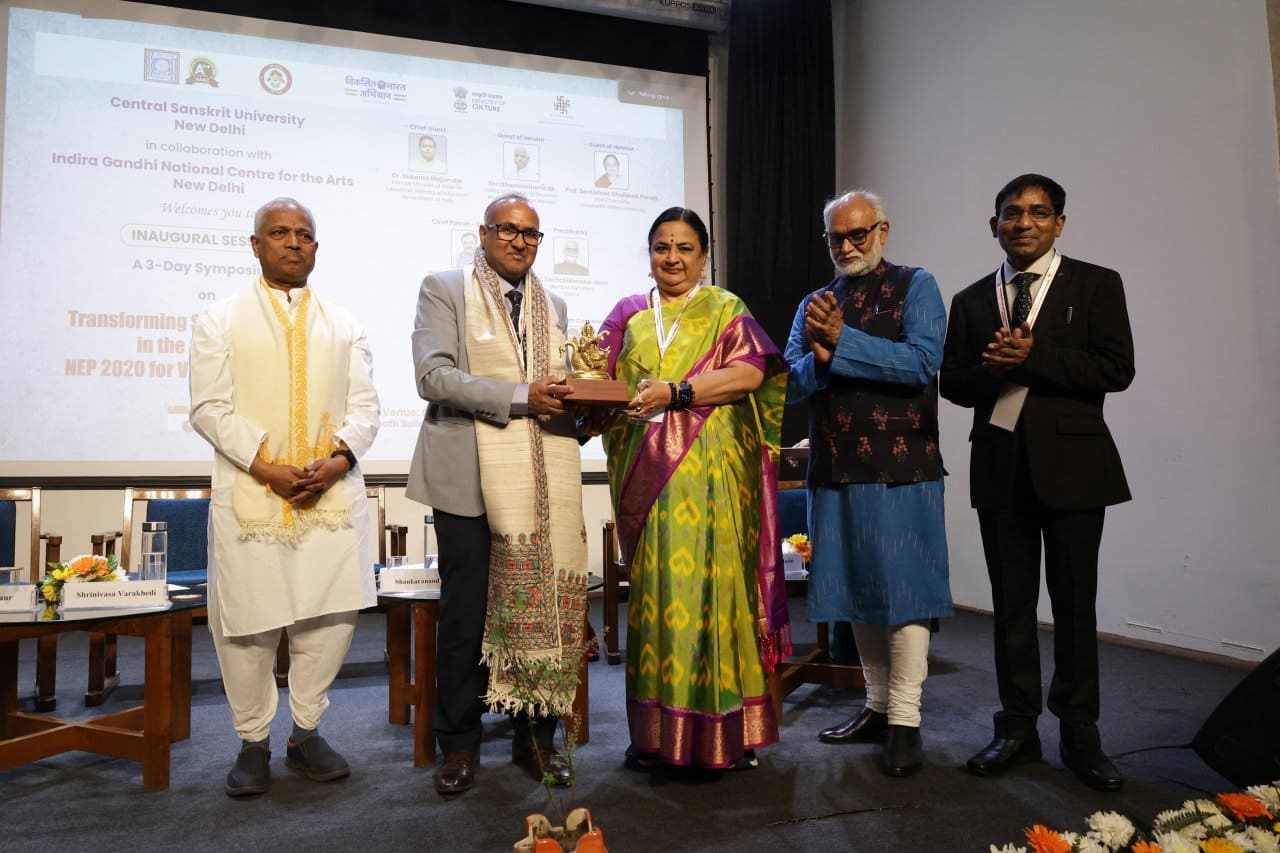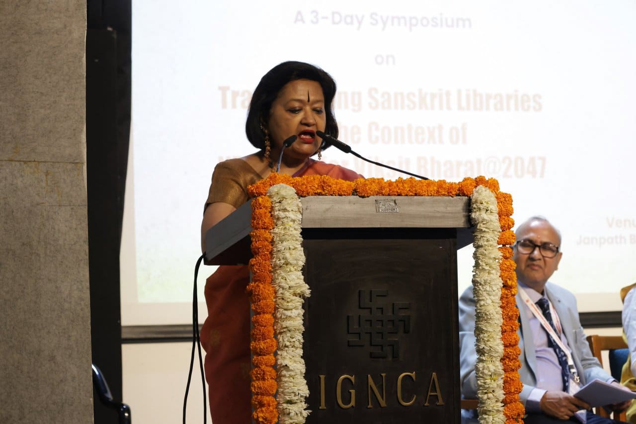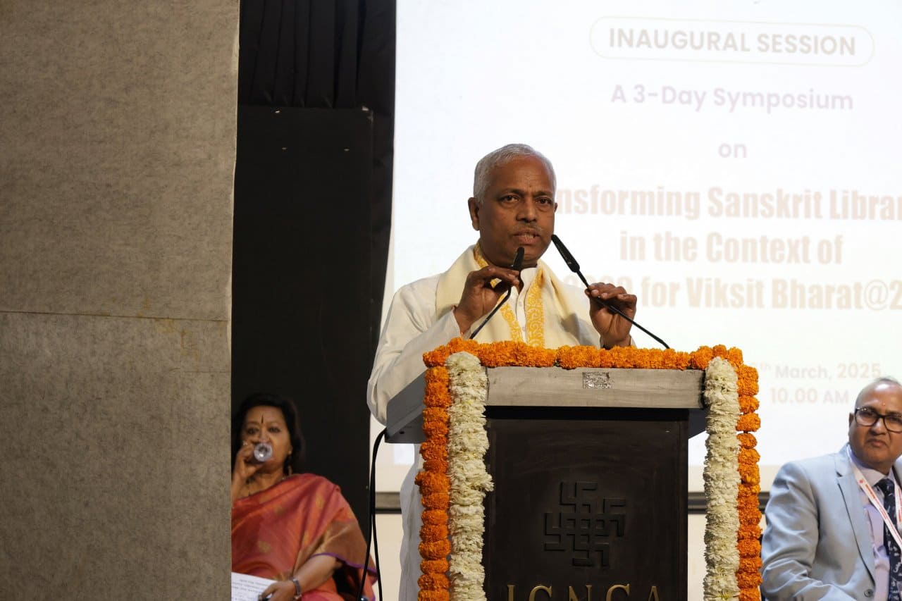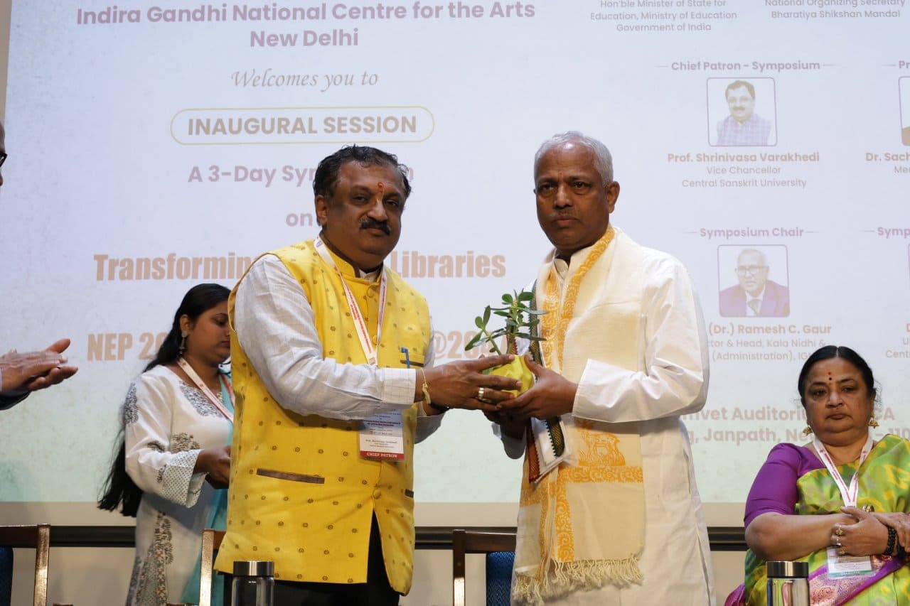 This report summarizes the inaugural session of the three-day Symposium titled “Transforming Sanskrit Libraries in the Context of NEP 2020 for Viksit Bharat @2047”, organized by the Central Sanskrit University at Indira Gandhi National Centre for the Arts, New Delhi, on 26th March 2025. The Chief Guest of the session was Prof. Santishree Dhulipudi Pandit, Vice-Chancellor of JNU. The speakers emphasized the need to revive, modernize, and digitize Sanskrit libraries, making them relevant knowledge centers in the digital age. Hon'ble Vice Chancellor Prof. Shrinivasa Varakhedi particularly highlighted the vital role of librarians as guides and facilitators in this transformation.