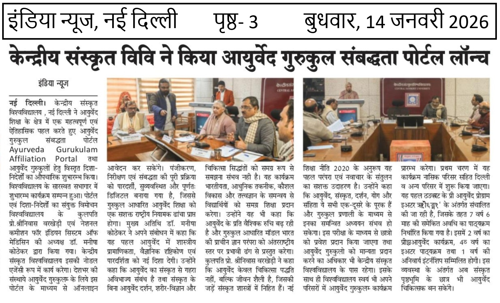 केन्द्रीय संस्कृत विश्वविद्यालय ने किया आयुर्वेद गुरुकुल संबद्धता पोर्टल लॉन्च