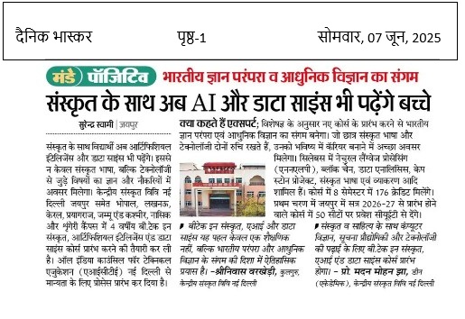 यह समाचार लेख राष्ट्रीय संस्कृत संस्थानम्, जयपुर परिसर द्वारा उठाए गए एक शैक्षणिक नवाचार पर आधारित है, जिसमें संस्कृत भाषा के साथ-साथ आर्टिफिशियल इंटेलिजेंस और डाटा साइंस जैसे आधुनिक विषयों को जोड़ा गया है। यह नया पाठ्यक्रम शैक्षणिक सत्र 2026–27 से शुरू किया जाएगा और इसमें 50 सीटें निर्धारित हैं। विशेषज्ञों का मानना है कि यह कोर्स विद्यार्थियों को भारतीय ज्ञान परंपरा तथा आधुनिक विज्ञान एवं तकनीक के बीच एक सेतु प्रदान करेगा, जिससे शिक्षा का एक नया, समन्वित मॉडल विकसित होगा।